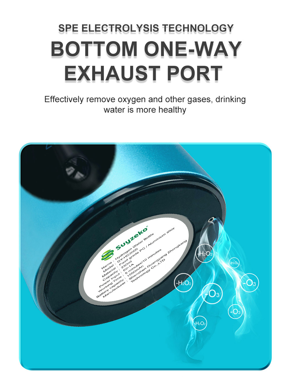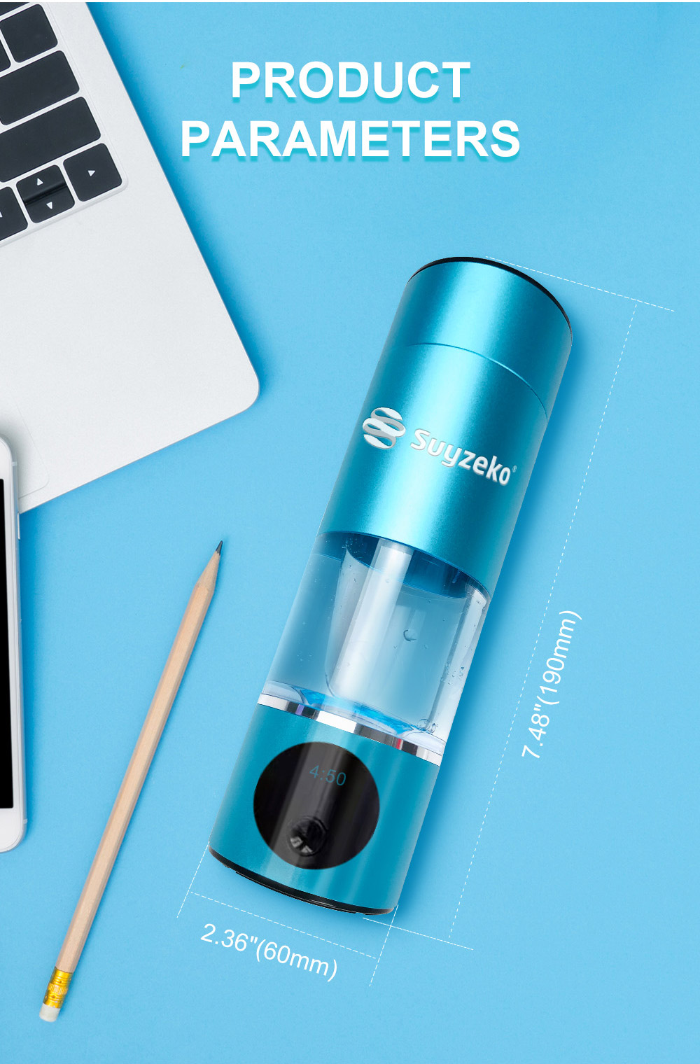 Hydrogen water bottle is a device that generates hydrogen-rich water. Water is converted to electrolytically reduced water by electrolysis technology to produce hydrogen gas. Hydrogen-rich water can improve sub-health, and it has the effect of adjuvant treatment for some diseases. A lot of researches have proved that hydrogen has a certain auxiliary treatment effect on various diseases, so the market began to develop and sell the hydrogen products. Hydrogen-rich water cup is one of the most effective and simply portable hydrogen electrolysis device.